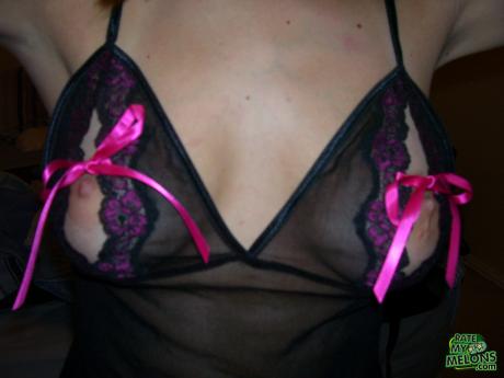 Looks like those tits were gift wrapped just for me! love the way they peek out of that neg. what a turn on!
